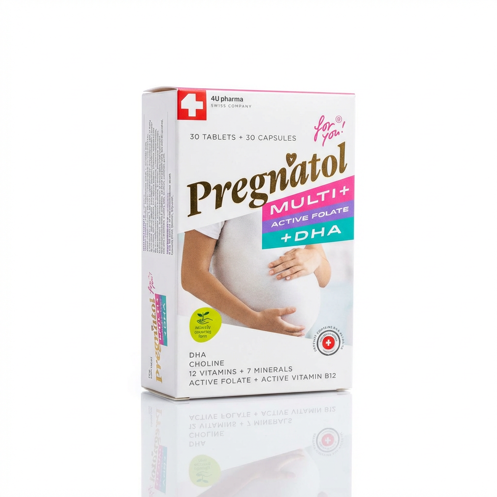 Dodatek ishrani za trudnice sa 11 vitamina, 5 minerala, DHA, EPA i probioticima. Paket sadrži 30 kapsula i 30 mekih kapsula.