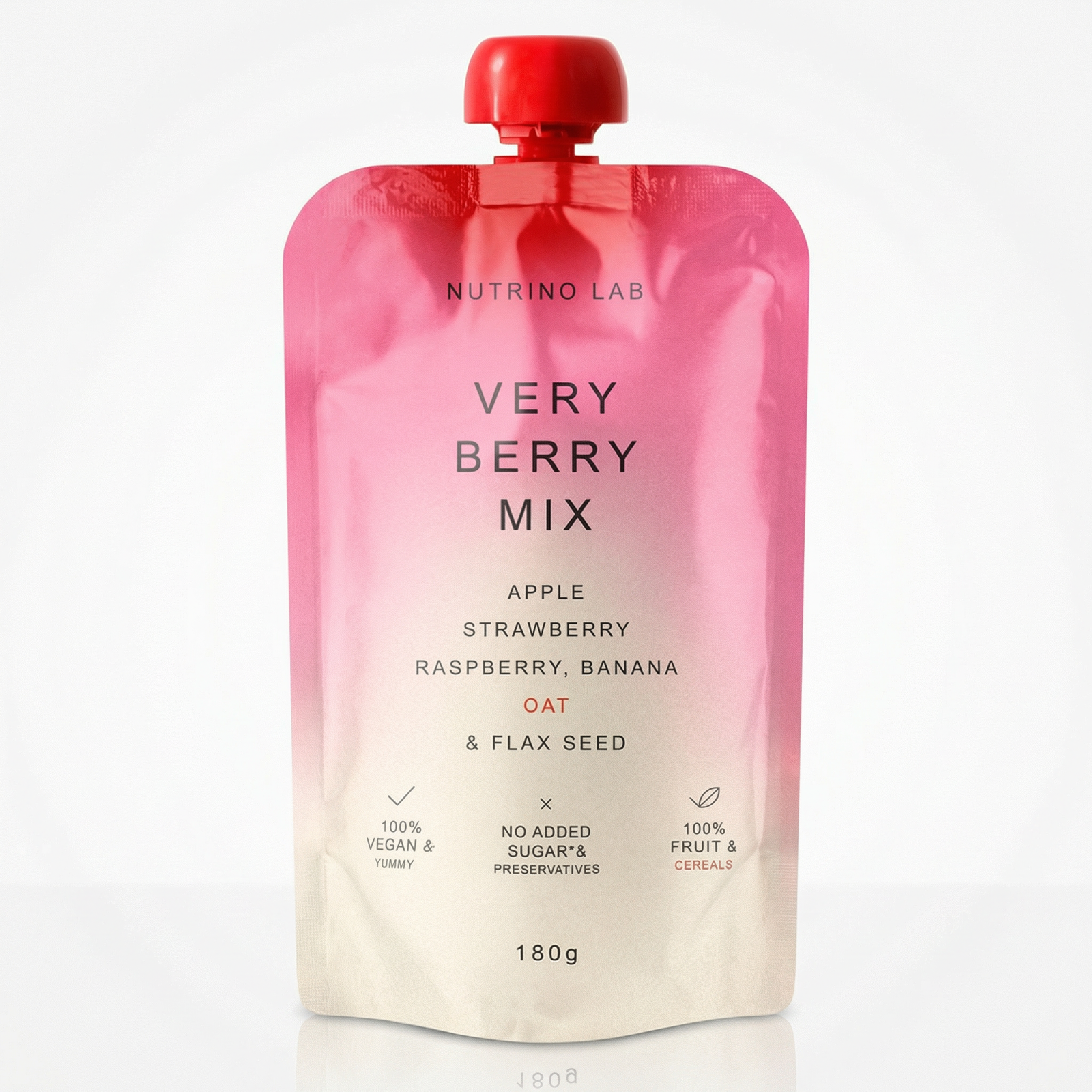 Nutrino Lab Very Berry Mix je voćni dodatak ishrani u pakovanju od 180g, sa prirodnim sastojcima poput jabuke, jagode, maline, banane, zobi i lanenog sjemena. Proizvod je namijenjen svima koji traže zdravu užinu bogatu voćnim i biljnih elementima bez dodatka šećera i konzervansa. Posebno je pogodan za vegane i osobe koje vode računa o uravnoteženoj ishrani. Sadrži 100% voće i žitarice, bez dodatnih aroma i zaslađivača, što doprinosi očuvanju prirodnog ukusa i nutritivnih vrijednosti. Može se konzumirati kao brzi obrok ili dodatak ishrani u svako doba dana. Nije zamjena za raznovrsnu ishranu.