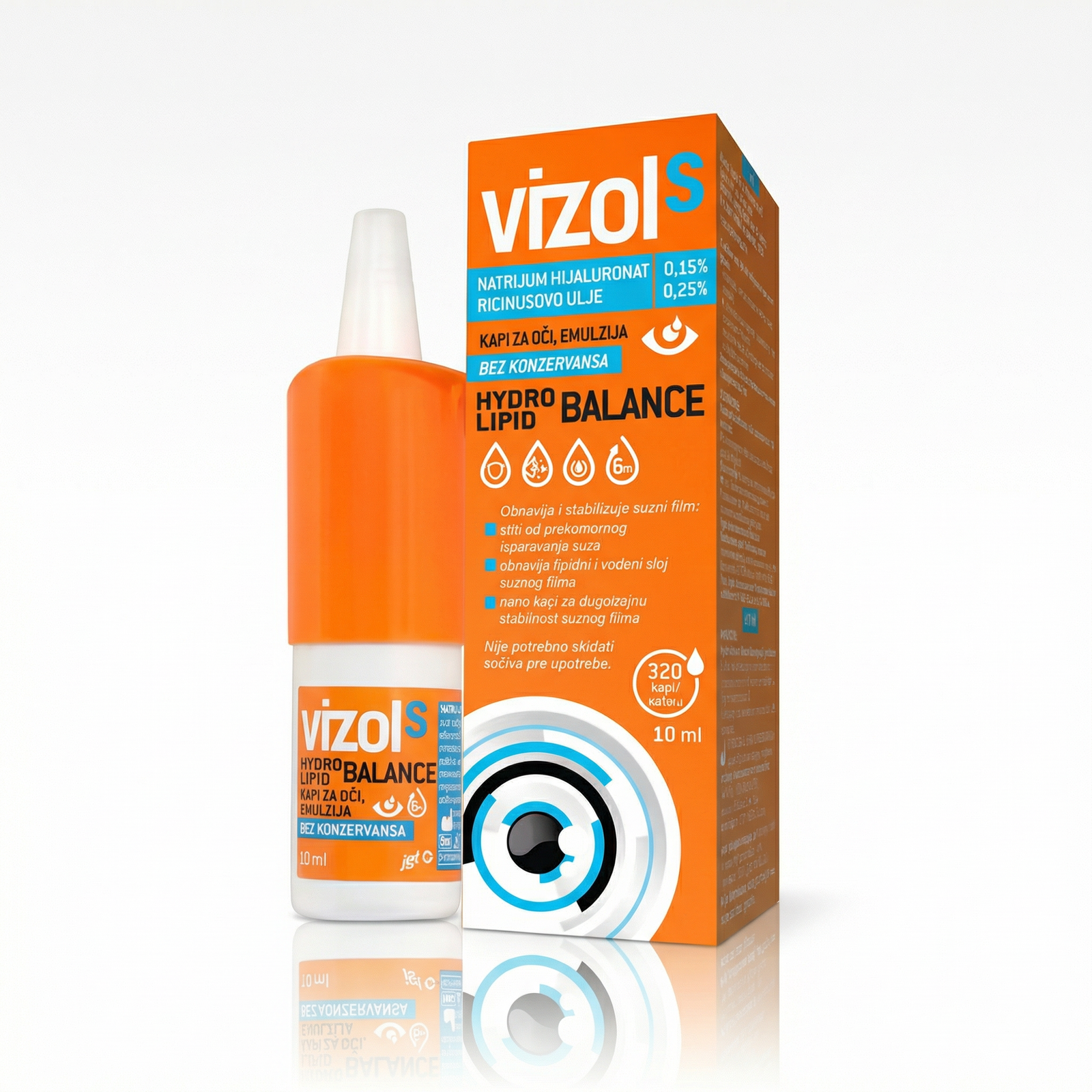 Vizol S Hydro Lipid Balance su kapi za oči u obliku emulzije, dizajnirane za osobe sa suvim i osjetljivim očima. Sadrže natrijum hijaluronat i ricinusovo ulje koje pomažu obnoviti lipidni i vodeni sloj suznog filma, čime se štiti površina oka od isušivanja. Proizvod ne sadrži konzervanse i mogu ga koristiti osobe koje nose sočiva, bez potrebe za njihovim skidanjem pre upotrebe. Pakovanje sadrži 10 ml kapi, što odgovara približno 320 pojedinačnih doza. Namenjeno je svim korisnicima koji traže dodatnu hidrataciju i zaštitu očiju u uslovima povećanog isparavanja suza ili suvoće oka. Nije zamjena za raznovrsnu ishranu.
