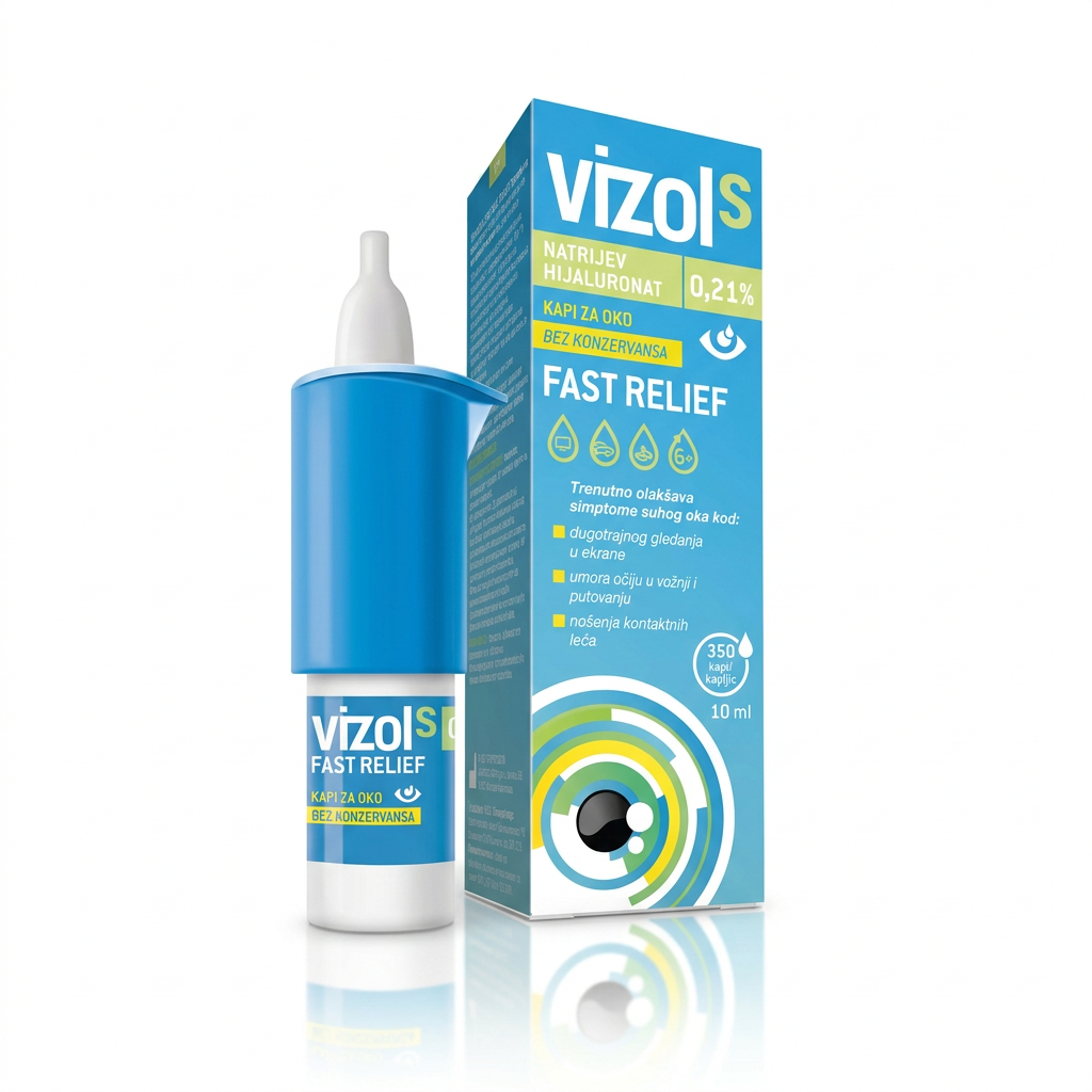 Vizol S Intensive suze su specijalizovani kapi za oči koji sadrže natrijev hijaluronat i dekspantenol. Namijenjene su osobama koje imaju problem sa suhoćom oka ili iritacijama uzrokovanim mehaničkim faktorima. Ove vještačke suze hidririšu i obnavljaju površinu oka, pružajući olakšanje kod suhoće, osjećaja peckanja i crvenila. Posebno su pogodne za upotrebu kod dugotrajnog nošenja kontaktnih sočiva, nakon operativnih intervencija i u terapijama lijekovima za oči. Proizvod je bez konzervansa, što smanjuje rizik od alergijskih reakcija i iritacija prilikom učestale upotrebe. Pakovanje sadrži 10 ml kapi za oči, sa praktičnim aplikatorom koji omogućava preciznu i sigurnu primjenu. Nije zamjena za raznovrsnu ishranu i treba ga koristiti u skladu sa uputstvima ljekara ili apotekara.